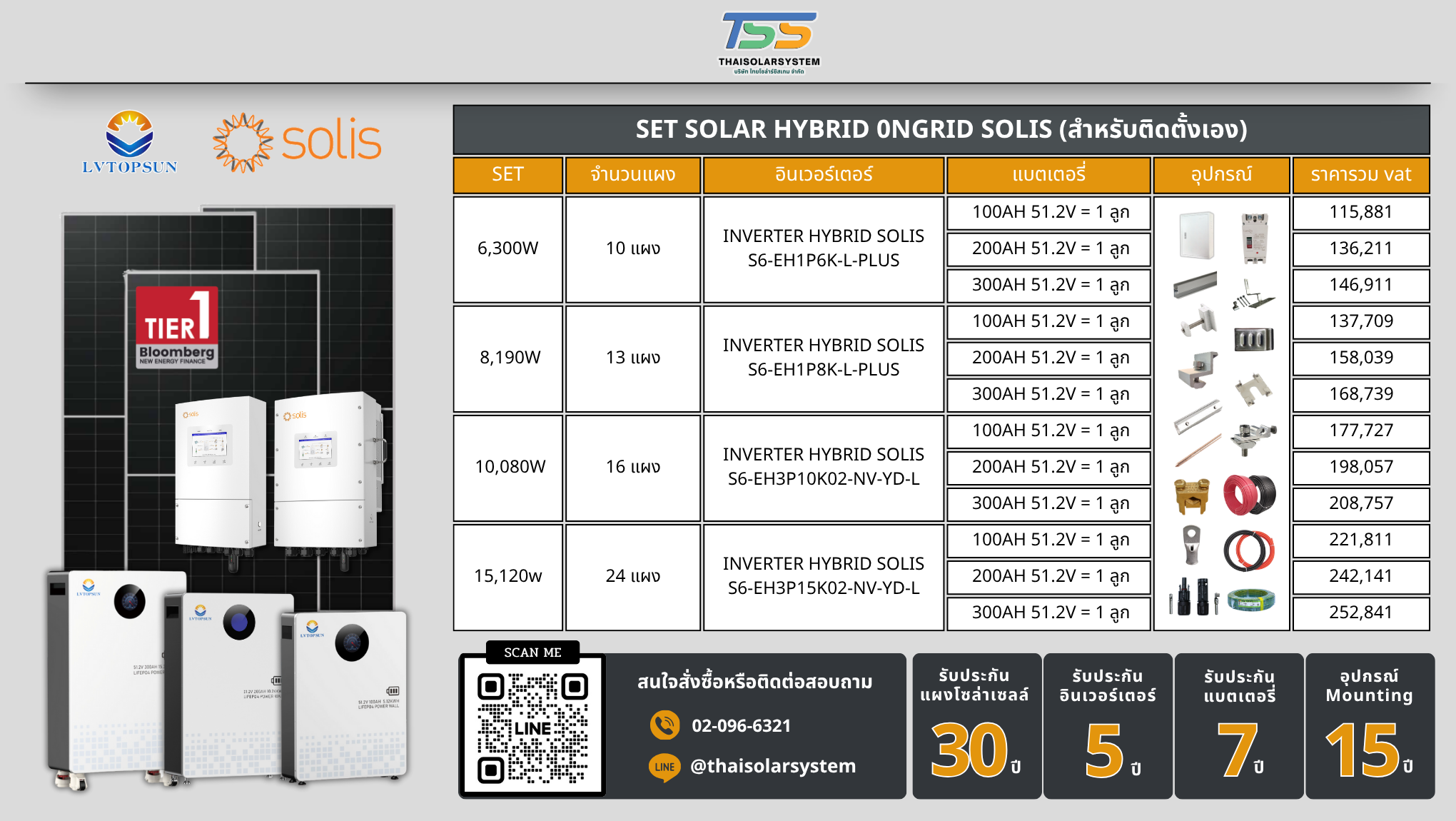 สินค้า ใน SET Hybrid 0ngrid Solis + Battery Lithium LVTOPSUN (12 ชนิด)
