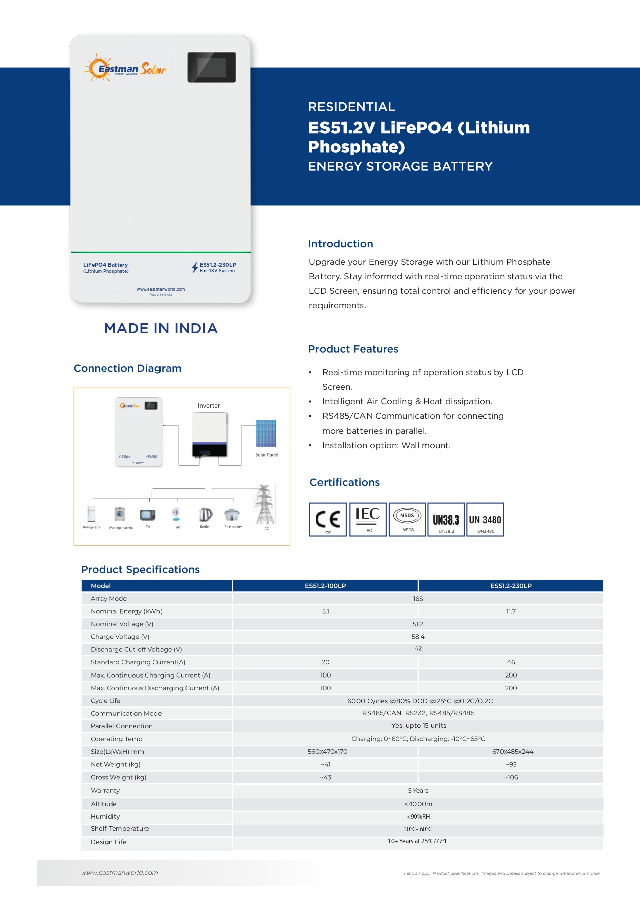 BATTERY LIFEPO4 EASTMAN 100Ah 51.2V (ประกัน 5ปี)