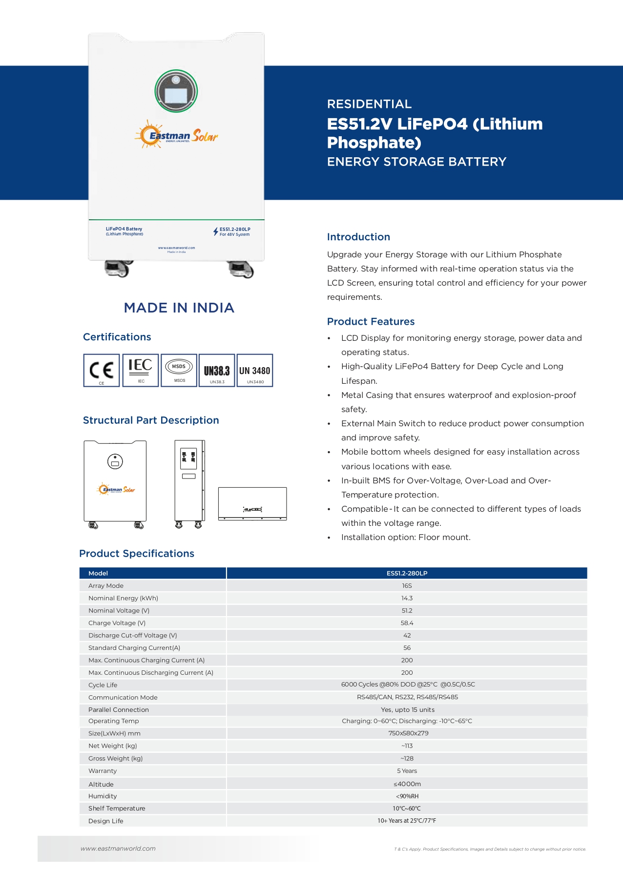 BATTERY LIFEPO4 EASTMAN 280Ah 51.2V (ประกัน 5ปี)