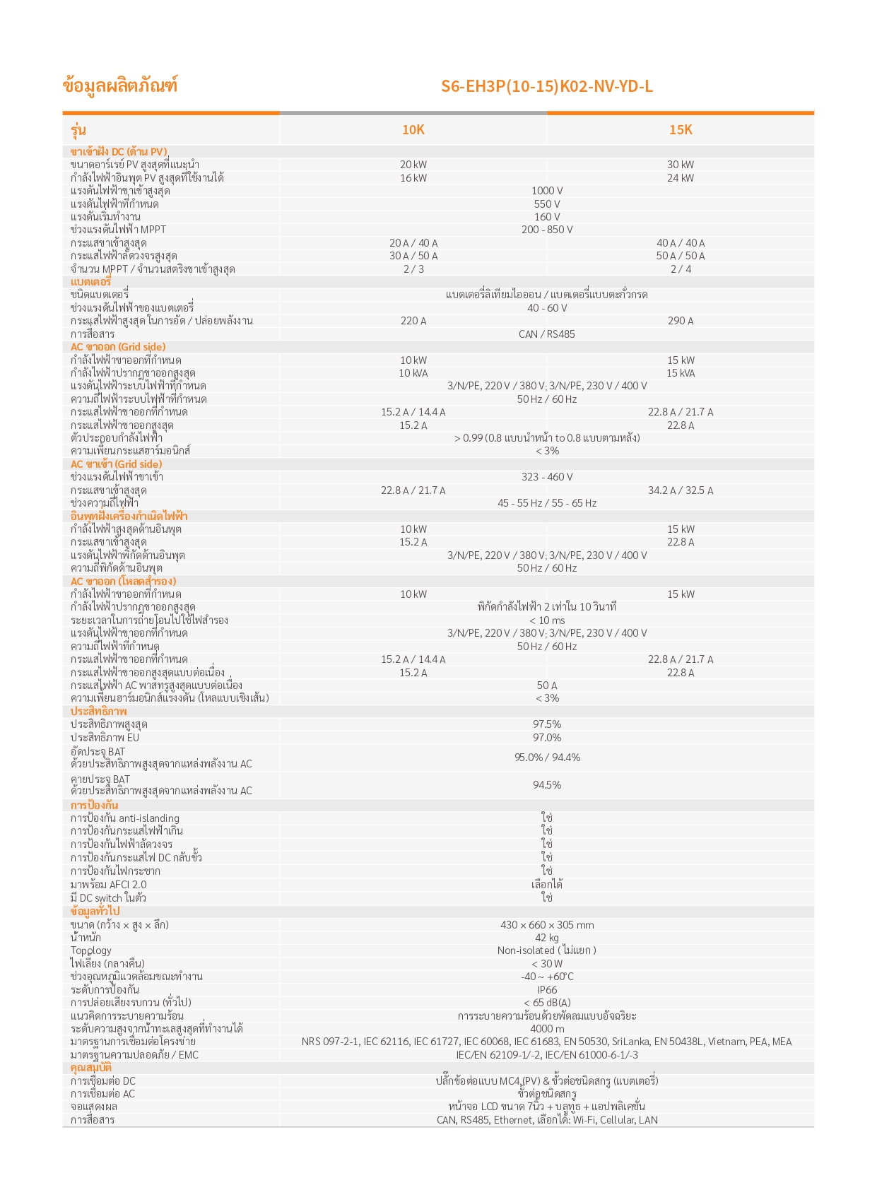 รุ่น | S6-EH3P10K02-NV-YD-L |